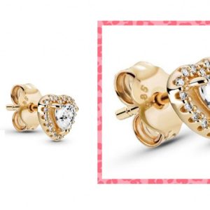 Aretes Pandora Shine Corazón Brillantes Oro Dorado