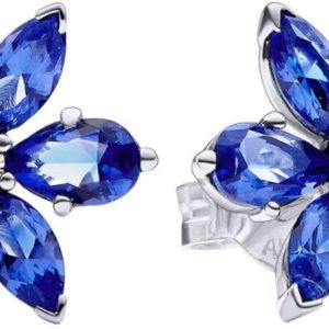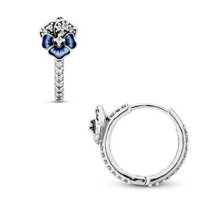 Aretes Pendientes Pandora Flor De Pensamiento Azul Plata Original