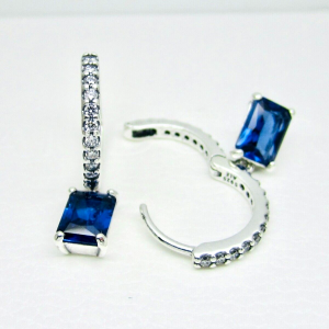 Aretes Pendientes Pandora De Aro Rectángulo Azul Brillante Original