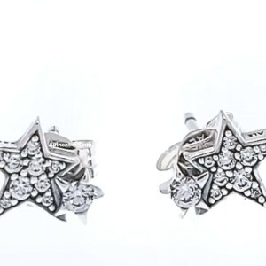 Aretes Pendientes Pandora Estrellas Dobles Brillantes Plata