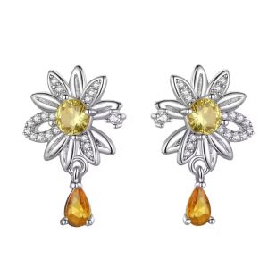 Aretes Pendientes Pandora Flor Girasol Piedra Naranja En Plata S925 Original