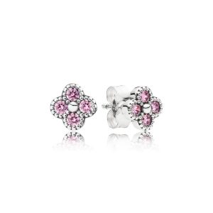 Aretes Pandora Flor De Pensamiento Rosa Pendientes En Plata S925