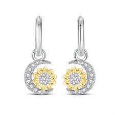 Aretes Pandora Flor Y Luna Brilante En Plata S925 Original