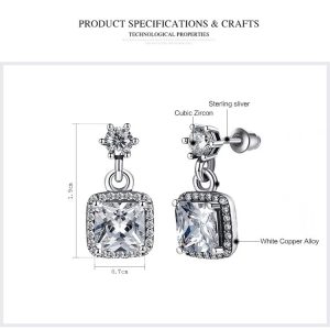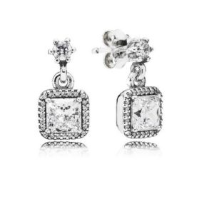 Aretes Pandora Halo Cuadrado Colgantes Brillantes Plata S925 Original