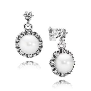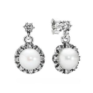 Aretes Pandora Gracia Eterna Perla Blanca Con Zirconita Plata S925 Original
