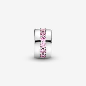 Charm Clip Pandora Línea Rosa Brillante Plata S925 Original