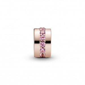 Charm Clip Pandora Rose Piedras Rosas Brillantes Oro Rosa