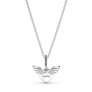 Collar Cadena Pandora Corazón Alas De Ángel Pavé Plata S925 Original
