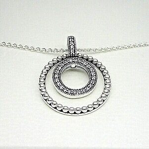 Collar Cadena Pandora Círculo Giratorio Brillante Signature Plata Original