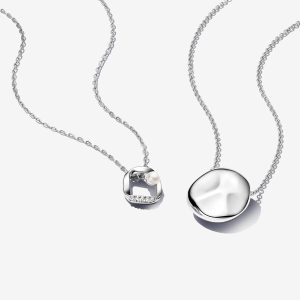 Collar Cadena Pandora Círculo y Cuadrado Brillantes Plata S925 Original
