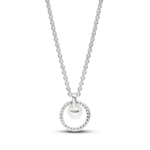 Collar Cadena Pandora Circulo De Pavé Y Perla Plata S925 Original