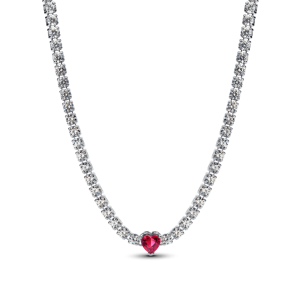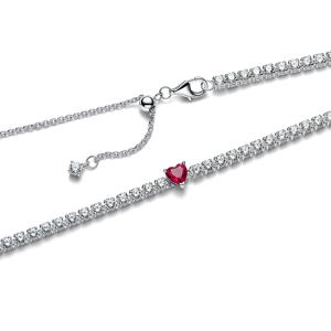 Collar Cadena Pandora Corazón Halo Brillante Ruby Rojo