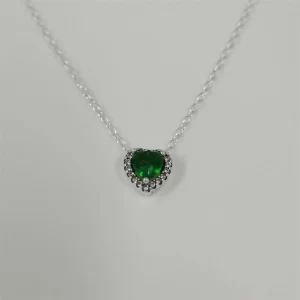 Collar Cadena Pandora Corazón Esmeralda Verde Plata S925