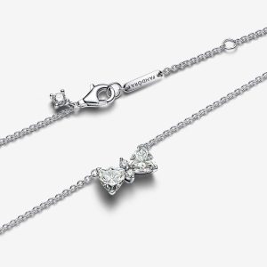 Collar Cadena Pandora Lazos De Amor Corazones Plata S925 Original
