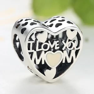 Charm Corazón Te Amo Mamá Mom Madre Fabricado En Plata S925
