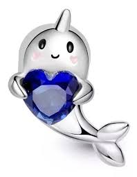 Charm Delfín Tierno Corazón Azul Amor Fabricado En Plata S925