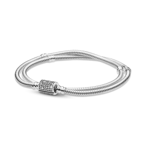 Pulsera Pandora Moments Doble Broche De Barril Brillante En Plata S925