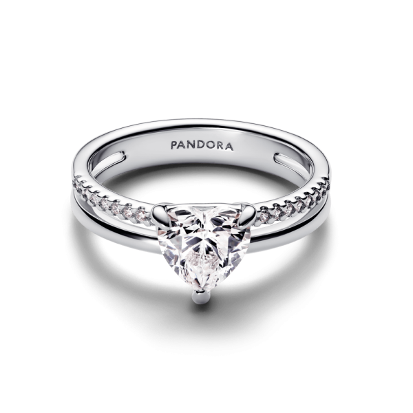 Anillo Pandora De Compromiso Corazón De Diamante Doble Plata S925 Original