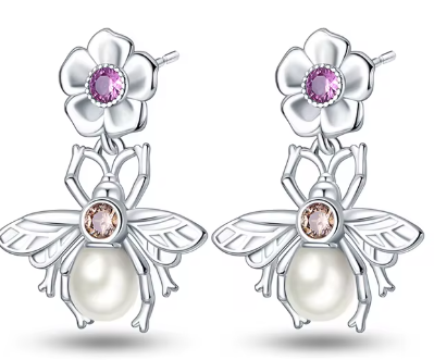 Aretes Pandora Abeja Y Perla Plata S925