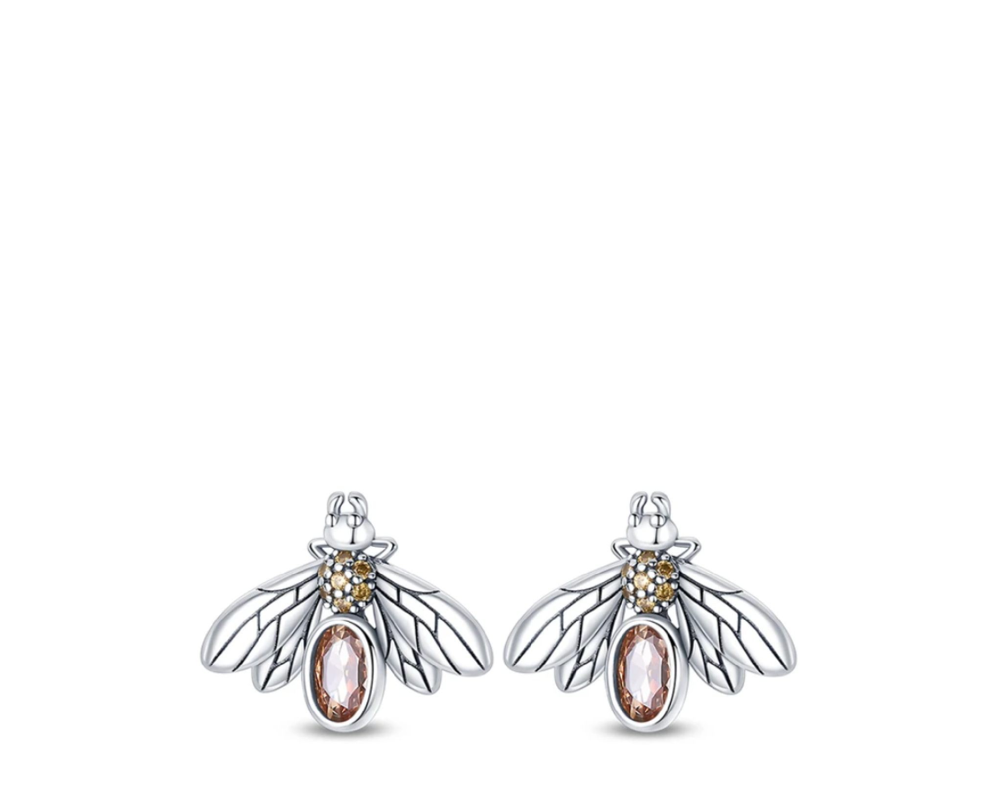 Aretes Pandora Abeja Y Piedra Preciosa Plata S925