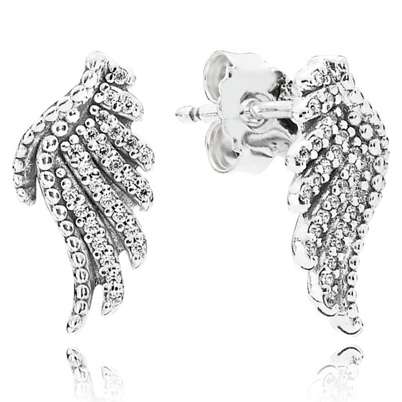 Aretes Pandora de Botón Ala de Ángel Resplandeciente En Plata S925