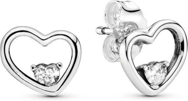 Aretes Pandora Corazón Doble Relieve Brillantes Plata S925 Original