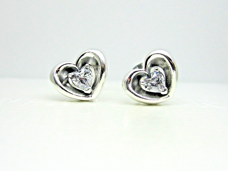 Aretes Pandora Botón Doble Corazón Brillante Plata S925 Original