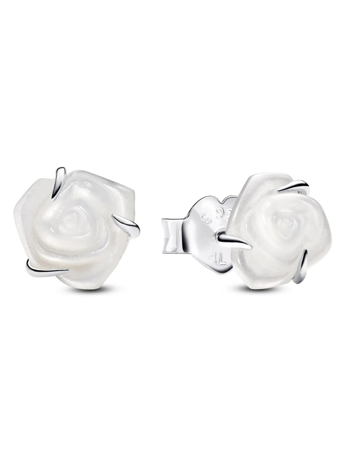 Nombre del producto: Aretes Pandora Rosa Blanca Floreciendo