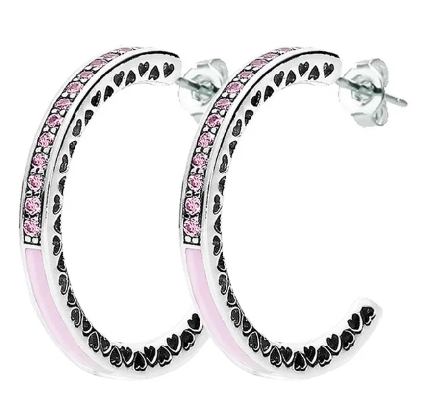 Aretes Pendientes Pandora Corazones Pave Rosa Plata S925