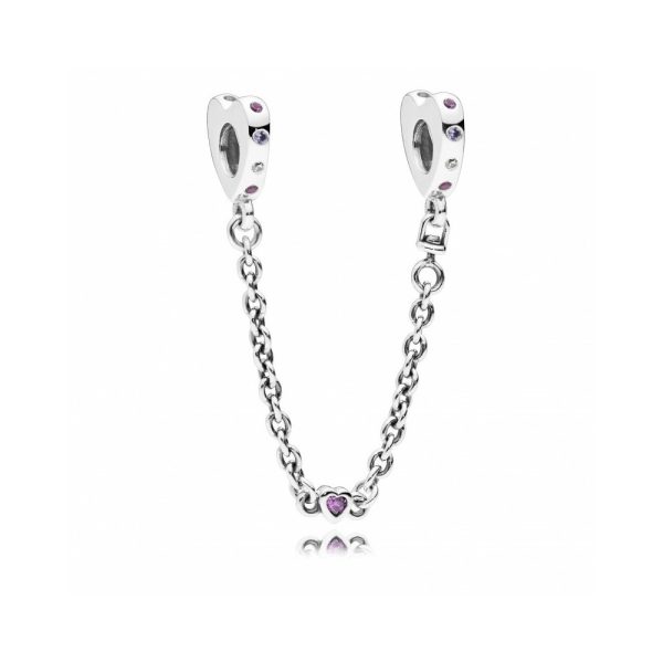 Cadena de Seguridad Pandora Corazones Lila Plata S925
