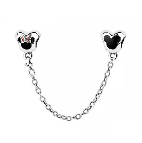 Cadena de Seguridad Pandora Disney Mickey Y Minnie Mouse Plata S925 Original