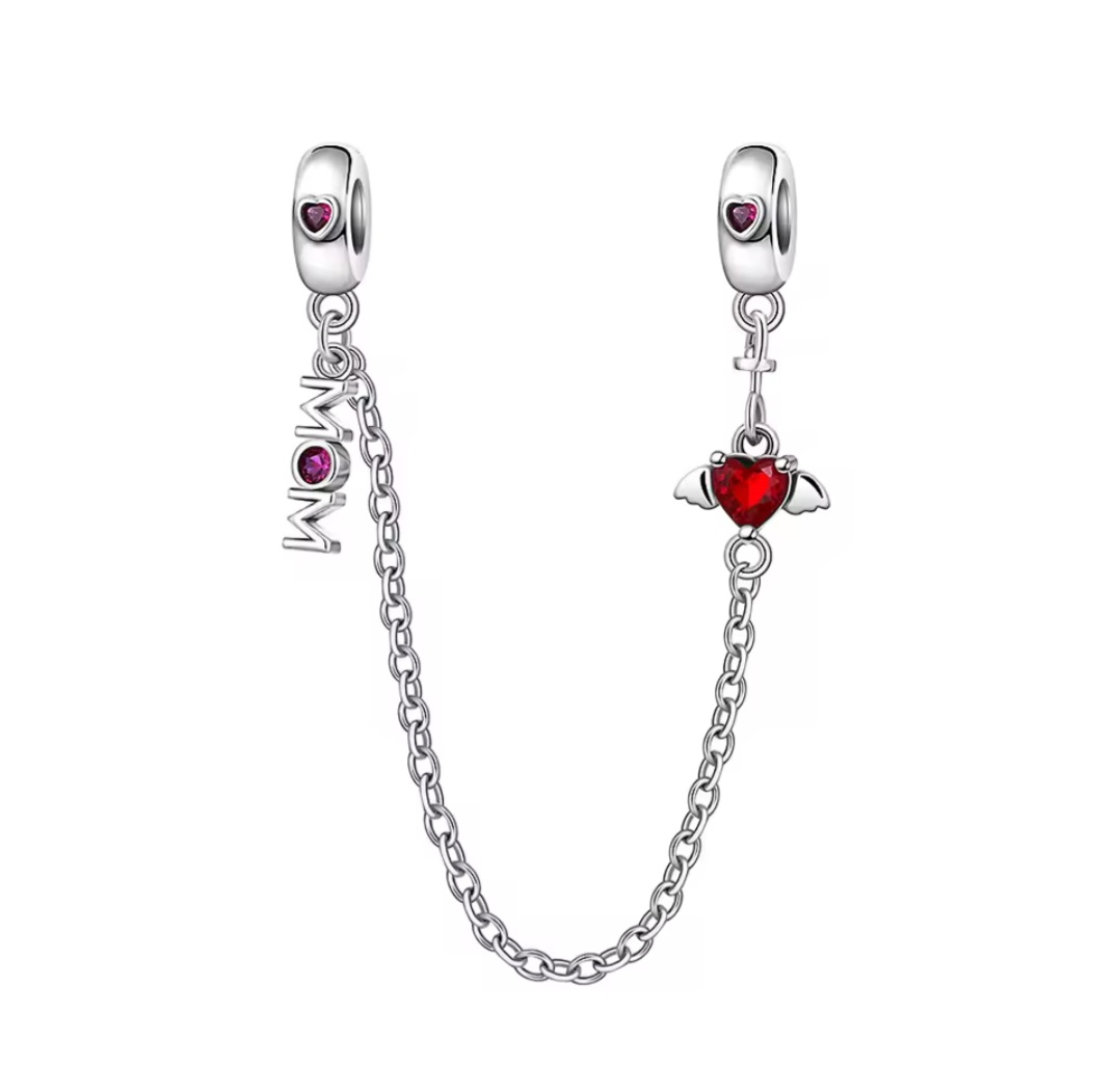 Cadena de Seguridad Pandora Mamá Madre Corazón Ruby Plata S925