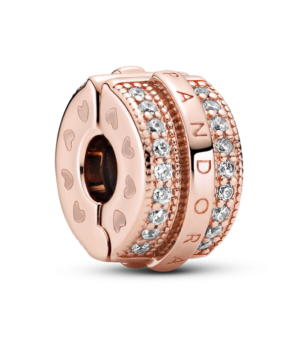 Charm Clip Pandora Rose Logo Brillante Oro Rosa