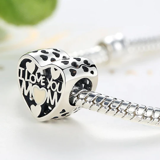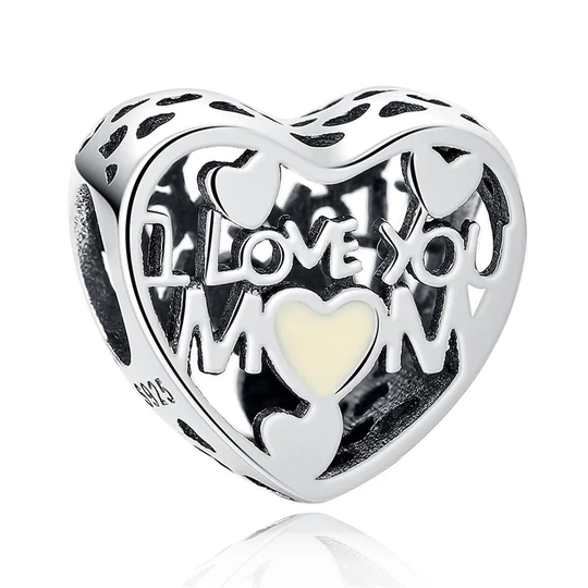 Charm Corazón Te Amo Mamá Mom Madre Fabricado En Plata S925