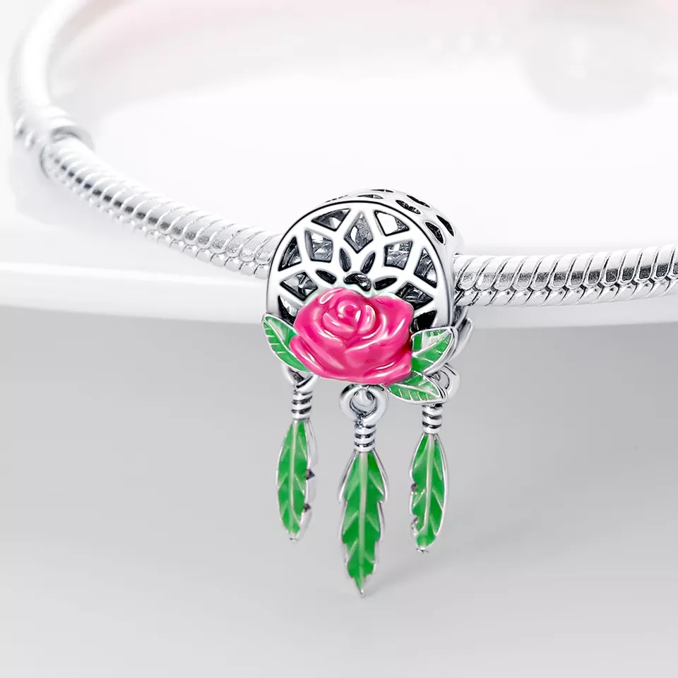 Nombre del producto: Charm Pandora Atrapasueños Flor Tres Plumas Colgante