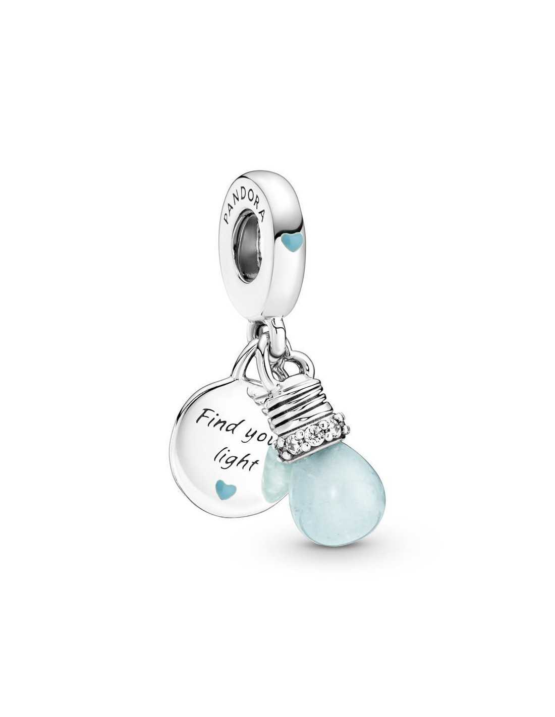 Inspirado en la nueva generación de mentes brillantes, el Charm Colgante Bombilla Brillante en la Oscuridad de Pandora para UNICEF se presenta con una bombilla realista que brilla por la noche como símbolo de esperanza. El borde se ha decorado con una fila de circonitas cúbicas transparentes. En el disco colgante de plata de primera ley se muestra la inscripción “Find your light” (Encuentra tu luz) en un lado. Además, ambos lados se han decorado con un corazón esmaltado en color azul claro. La anilla se ha decorado con las mismas palabras: “Find your light” (Encuentra tu luz). Utiliza este charm para demostrar tu apoyo hacia niñas y niños de todo el mundo para que puedan cumplir sus sueños. Exención de responsabilidad: por cada charm de Pandora for UNICEF vendido entre el 7 de abril de 2022 y el 7 de julio de 2022,