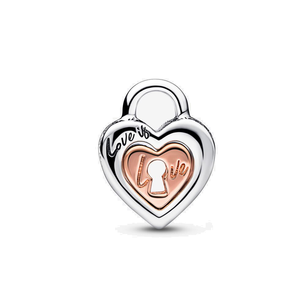 Charm Pandora Candado Dos Tonos Oro Rosa y Plata