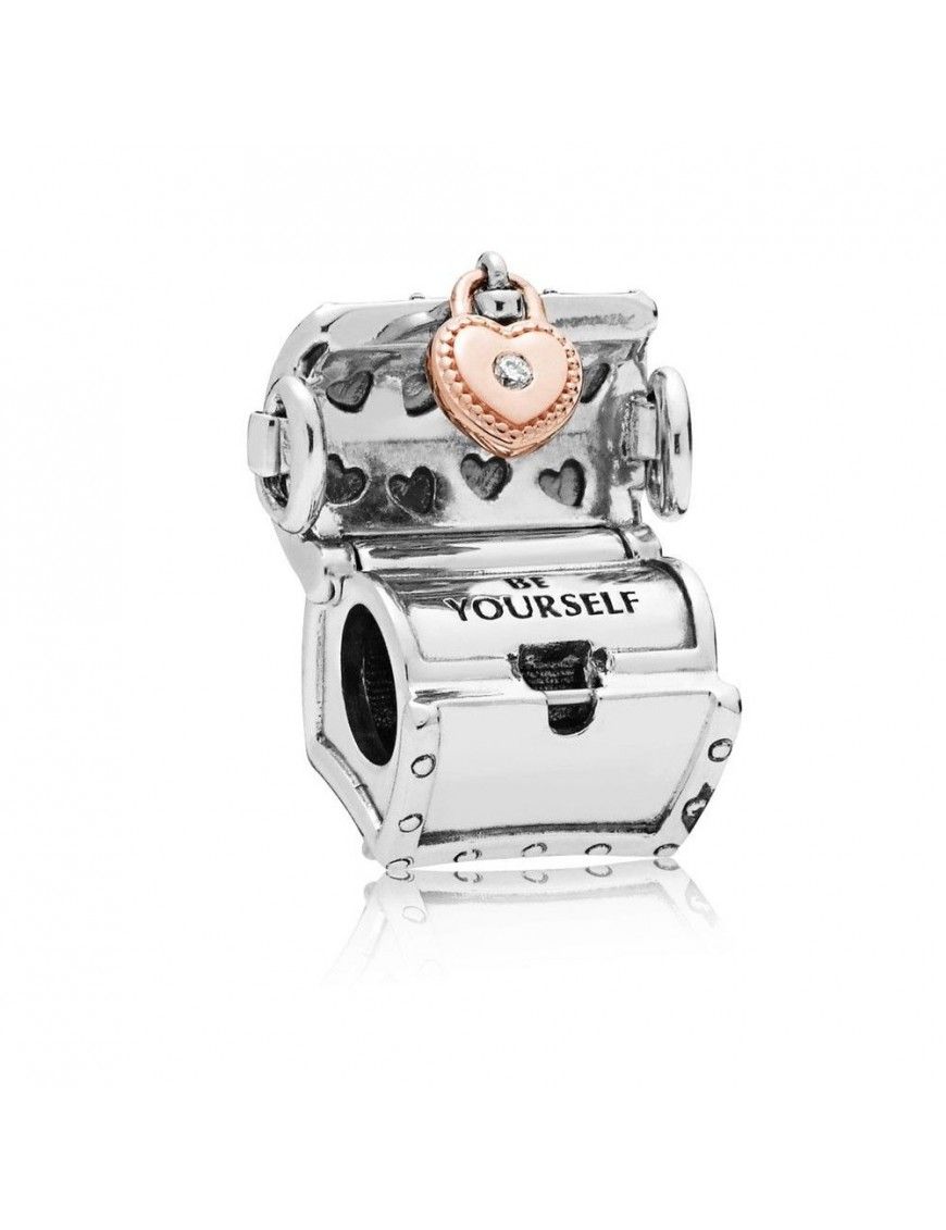 Charm Pandora Club Cofre Del Tesoro Dos Tonos Oro Rosa y Plata Original