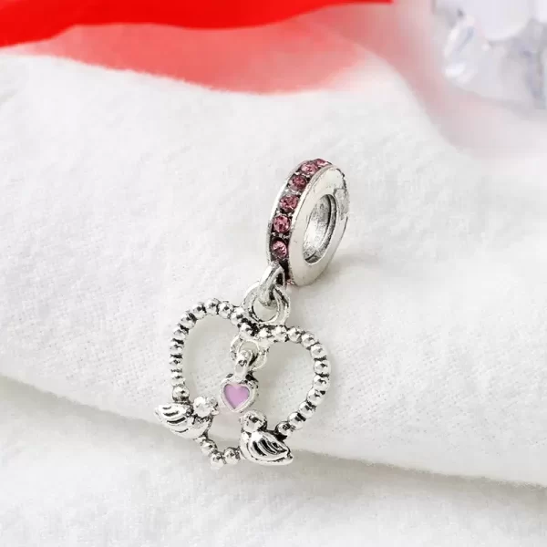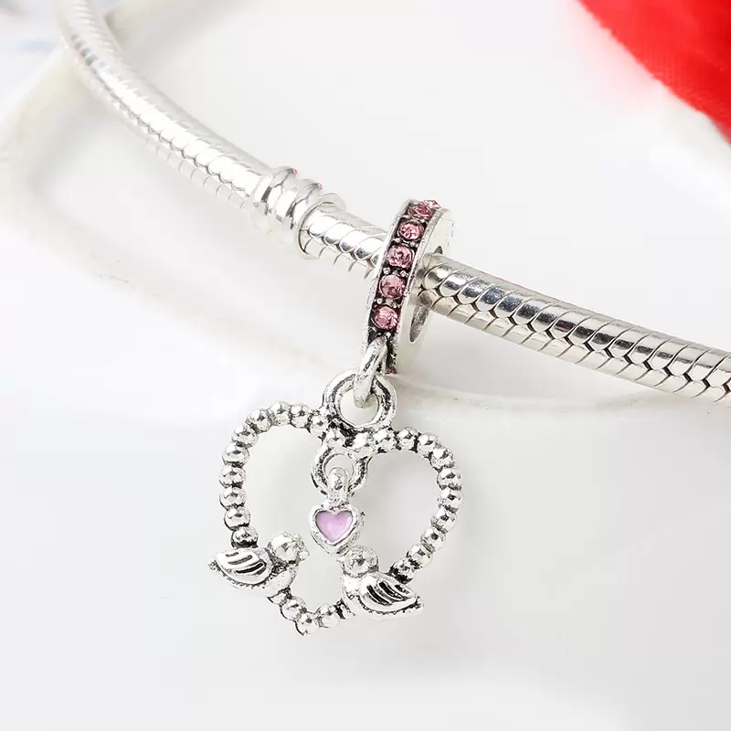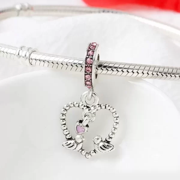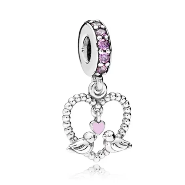 Nombre del producto: Charm Pandora Corazón Colgante Pájaros Rosa