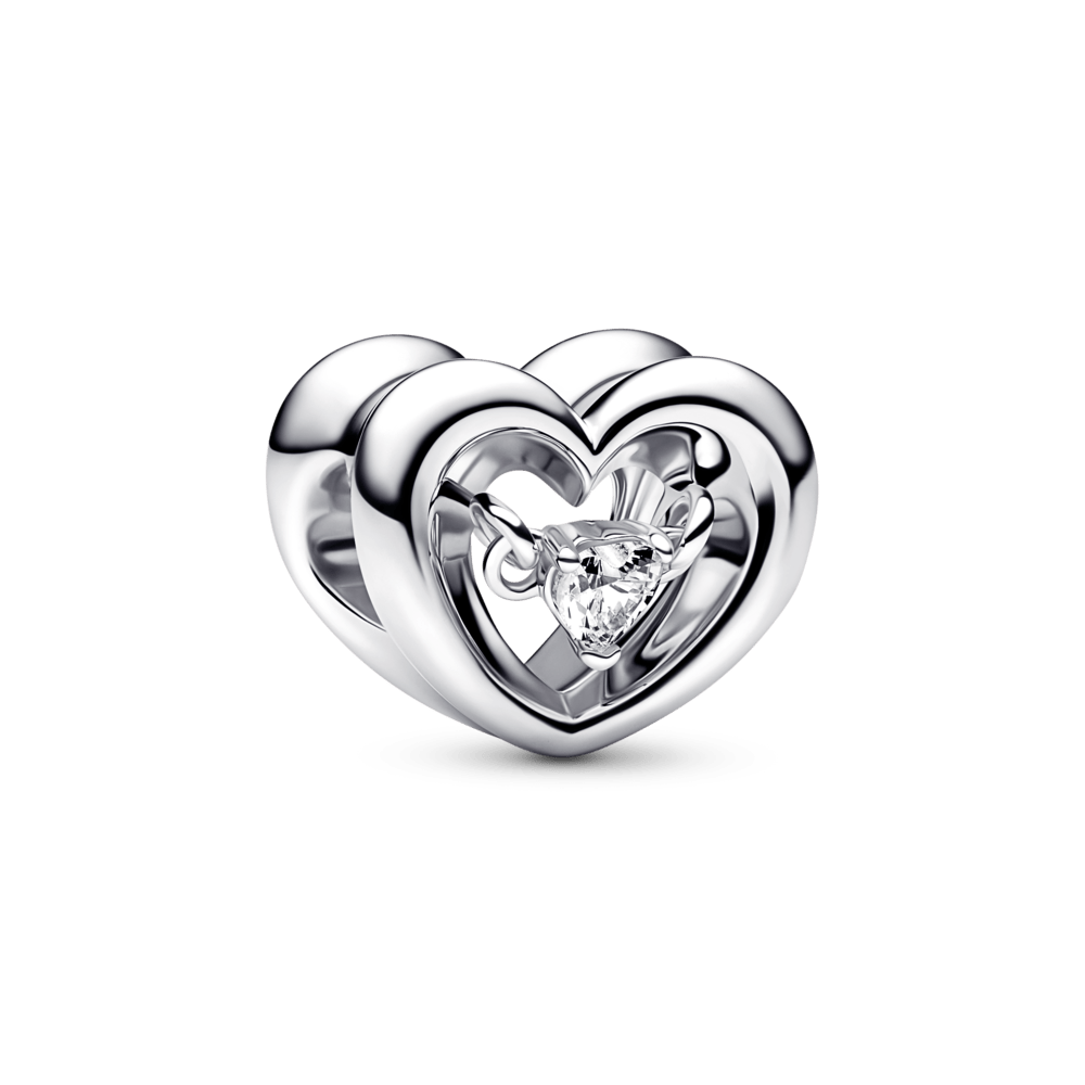 Charm Corazón Radiante y Piedra Flotante Plata