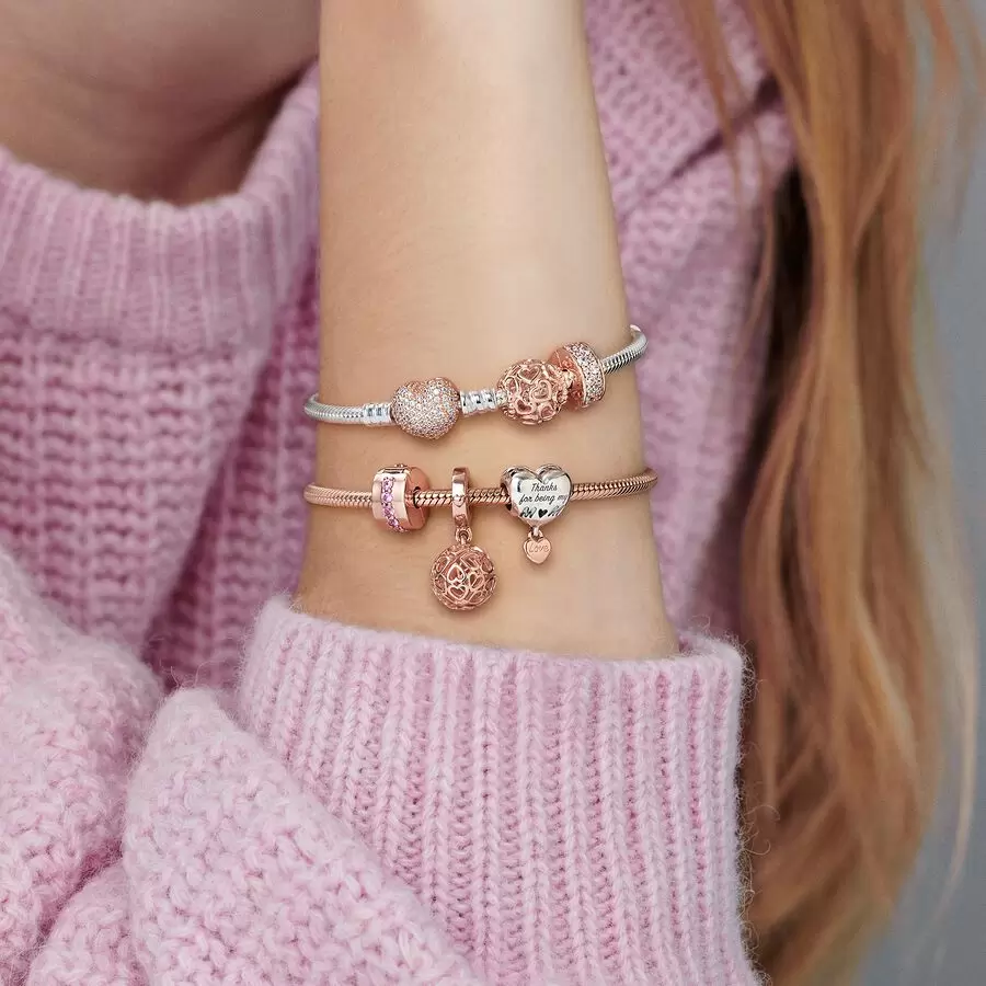 Charm Pandora Corazón Te Quiero Mamá Madre Dos Tonos Oro Rosa y Plata Original