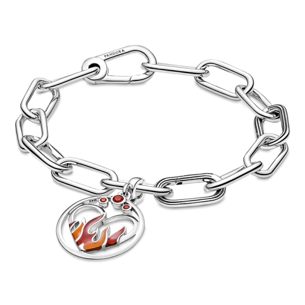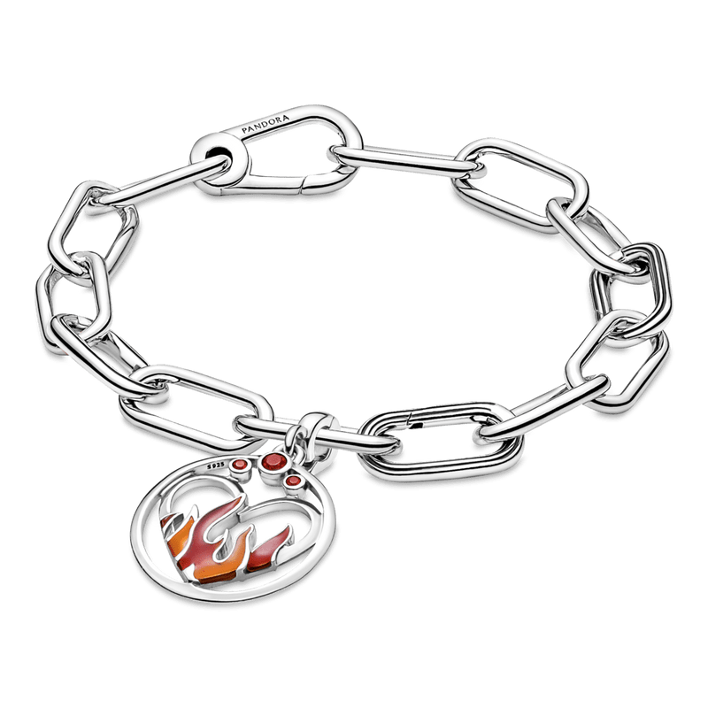 Pon tu corazón en algo nuevo con el medallón Fuego interior de Pandora ME. Este medallón de plata esterlina acabado a mano representa un corazón lleno de flamas formadas con esmalte rojo y color cereza translúcido aplicado a mano. El medallón está adornado con tres cristales rojos talla brillante en engaste en bisel, representa la pasión y te alienta a que siempre recuerdes tu propio poder. Dale estilo a tu medallón en tus brazaletes y collares de cadena de eslabones, anillos y aros, dependiendo de tu estado de ánimo, y úsalo todos los días como amuleto positivo. Los estilos de medallón se presentan tanto en eslabones de estilo cerrado y conectores de estilo que se abren con su sencillo gancho que cierra con un clic.