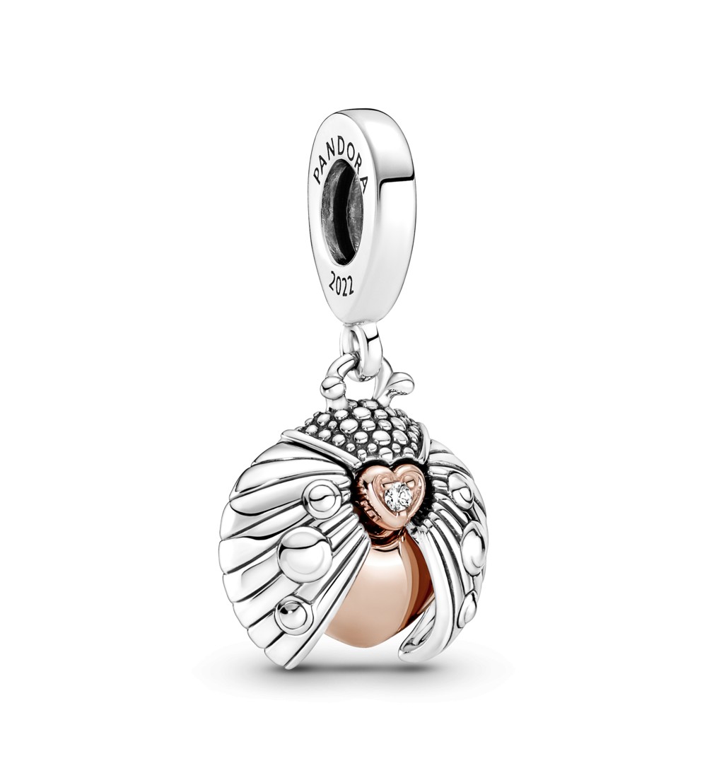 Charm Pandora Rose Mariquita Y Corazón Dos Tonos Oro Rosa Y Plata
