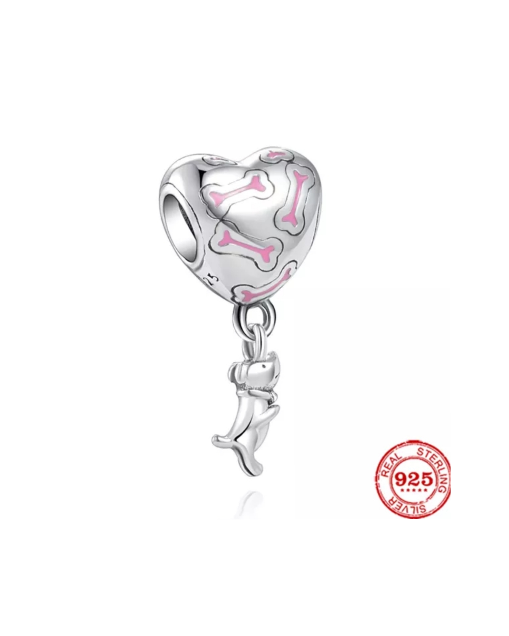 Charm Perro Mascota Globo Colgante De Corazón Fabricado En Plata S925
