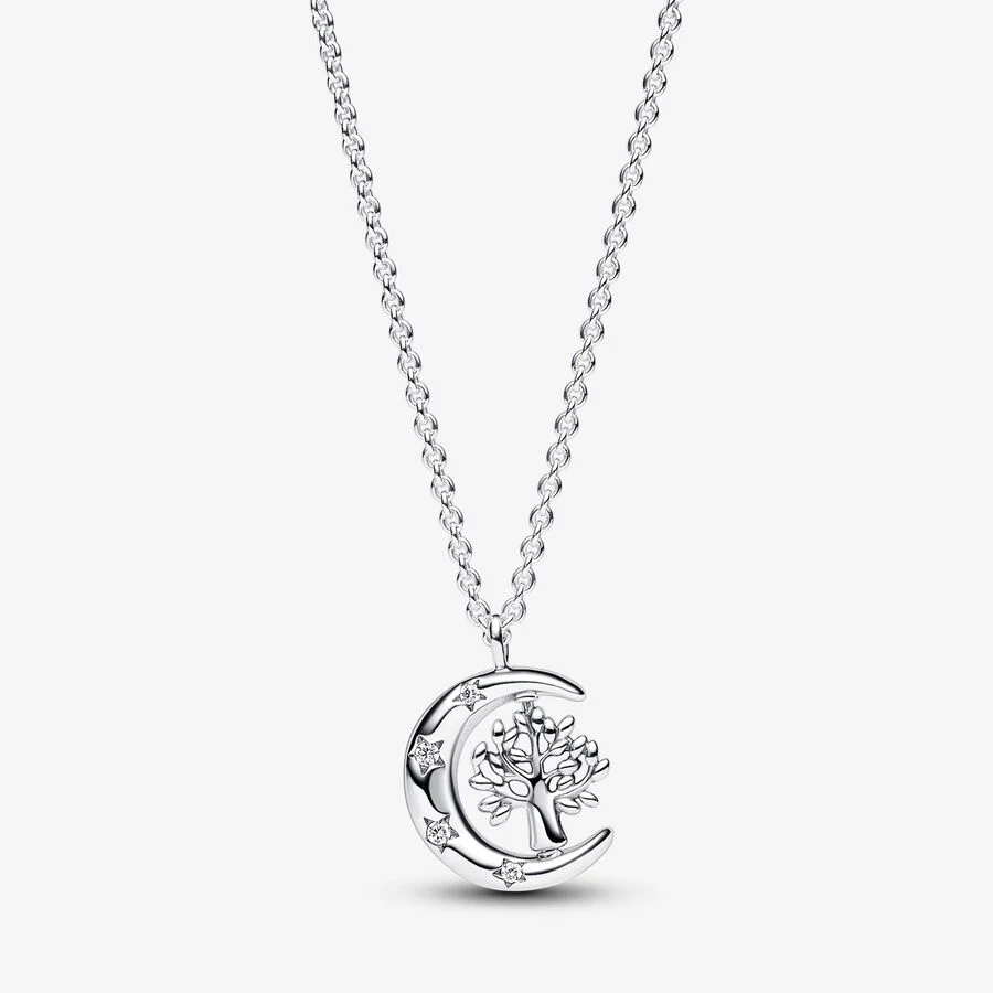 Collar Cadena Pandora Árbol De La Vida Familia Luna Plata S925 Original