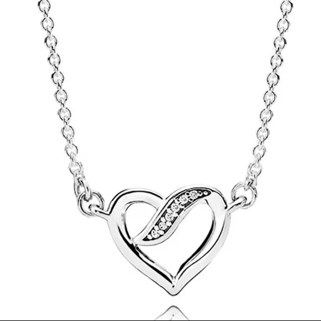 Collar Cadena Pandora Corazón Enlazado En Plata S925