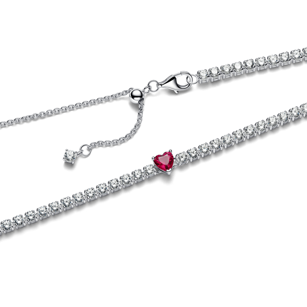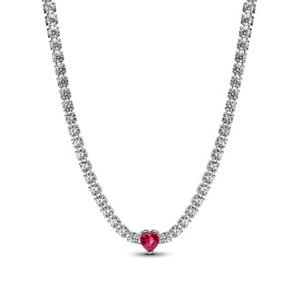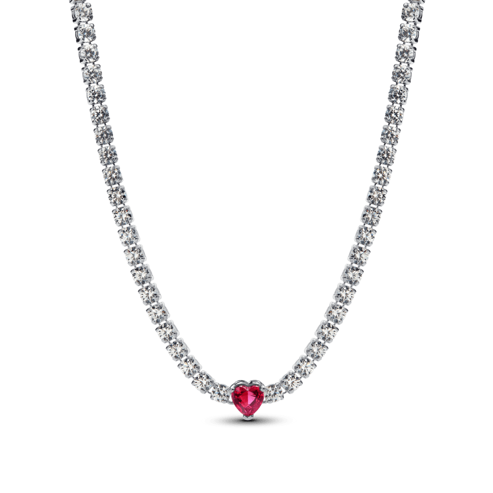 InicioCollares Pandora Collar Cadena Pandora Corazón Halo Brillante Ruby Rojo Diamantes