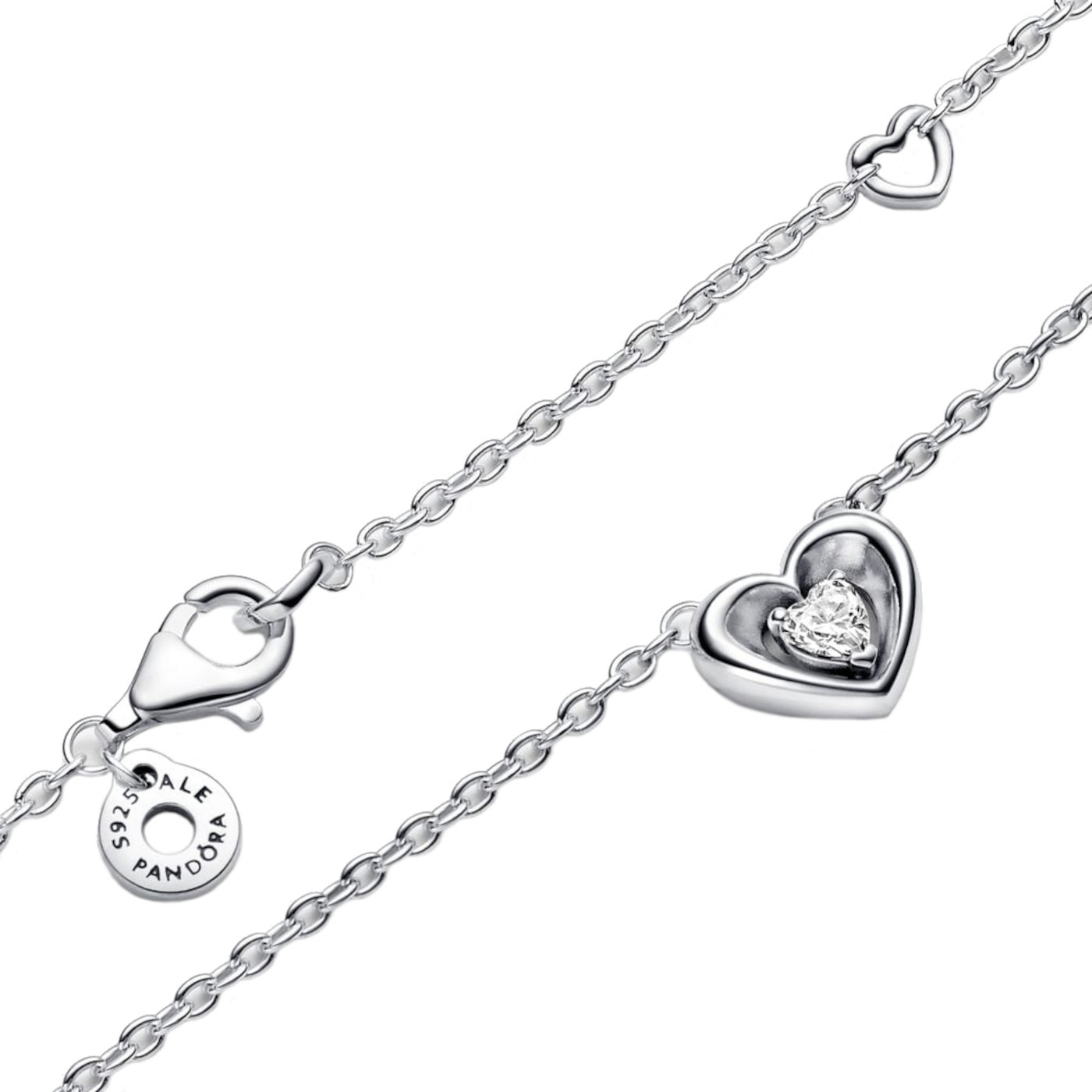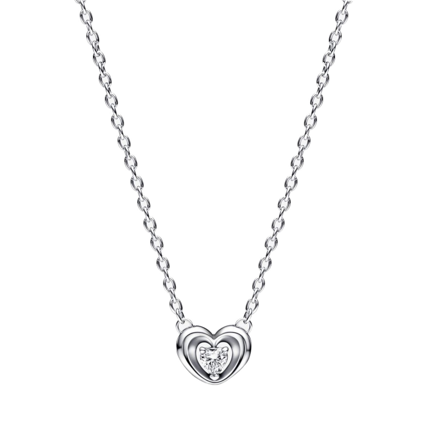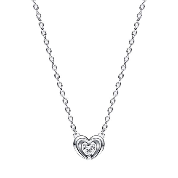 Collar Pandora Corazón Doble Circonita Plata S925 Original