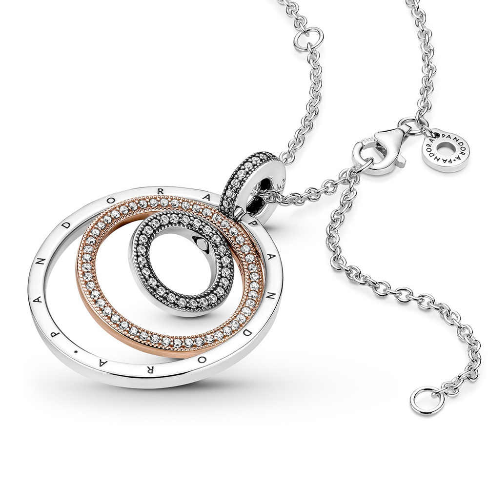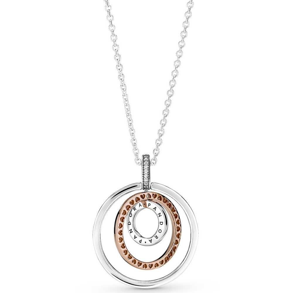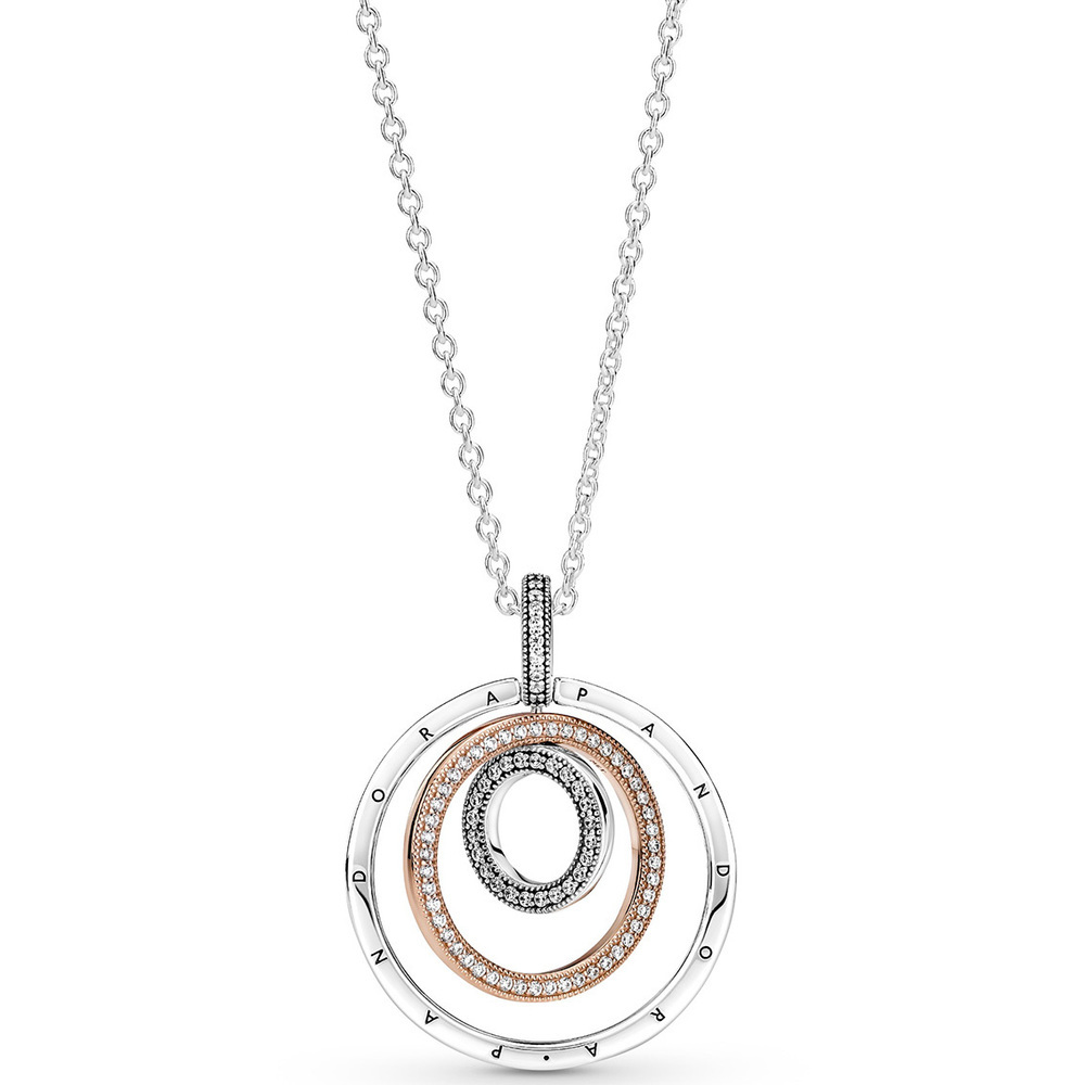 Collar Pandora Círculos Giratorios Dos Tonos Oro Rosa y Plata S925 Original