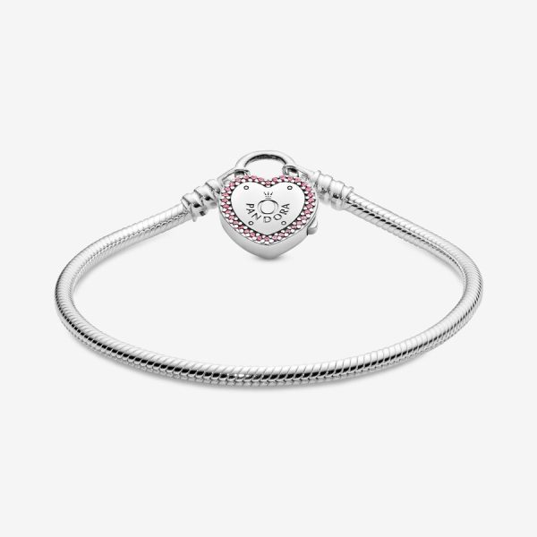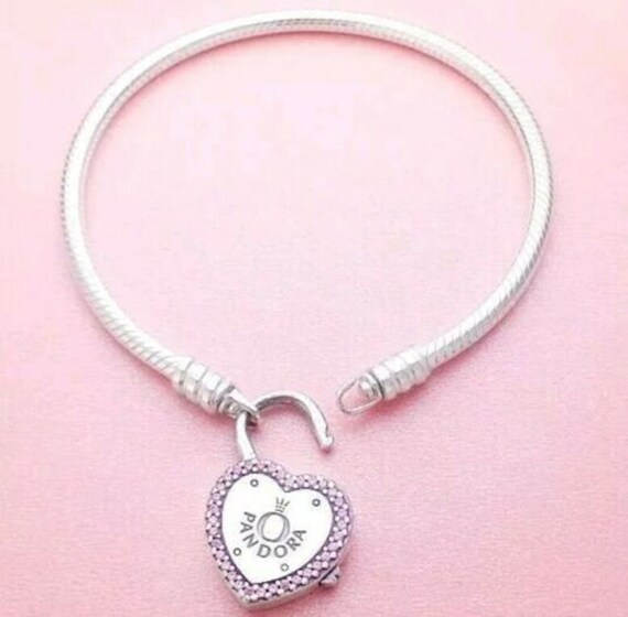 Pulsera Pandora Moments Broche De Corazón Candado Rosa en Plata S925 Original